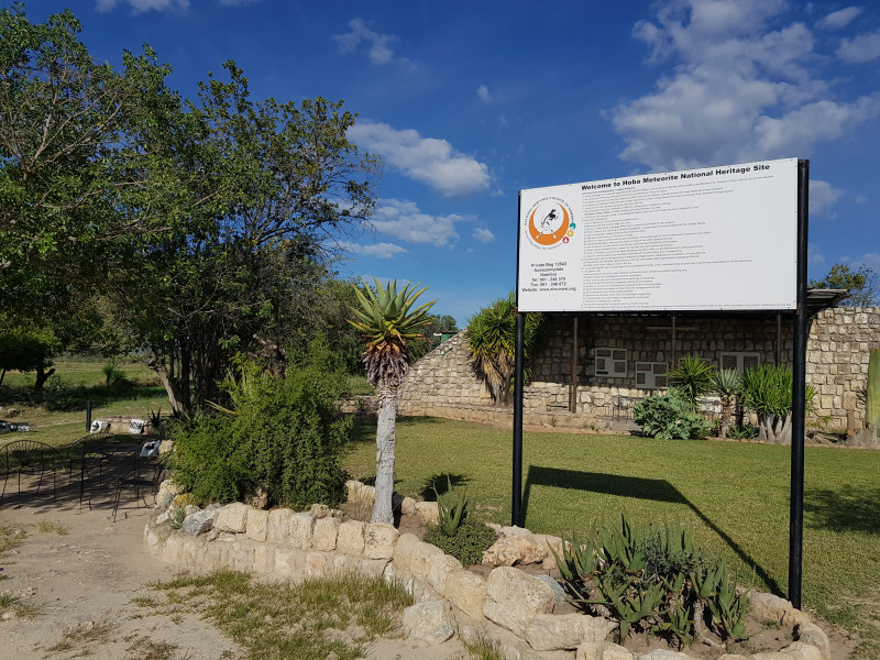 호바 운석(Hoba Meteorite) 오프로드를 따라서 달려가다보면 중간에 Hoba Meteorite를 알려주는 커다란 이정표를 만날 수 있다. 도착하면 관리사무실을 볼 수 있는데, 이곳을 국가에서 관리하면서 입장료를 받는다.