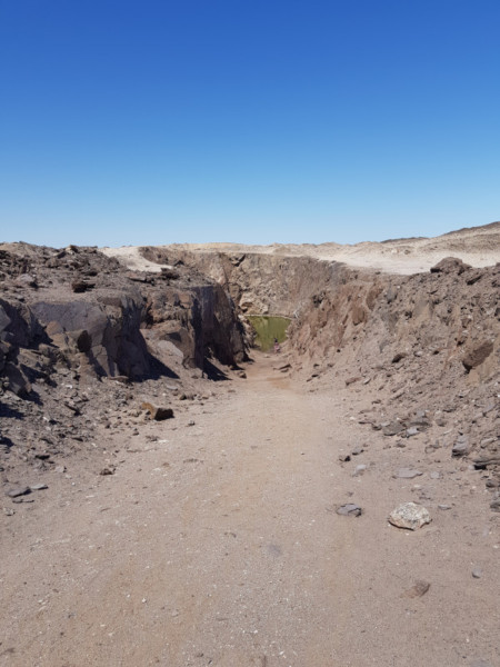 소금결정 (케이프크로스, Cape Cross) 케이프크로스(Cape Cross)에서 1시간정도 거리에 사해(Dead Sea)가 있다. 지도에서 확인하면 멀지 않은 곳이지만 사해로 들어가는 길이 너무 험해서 시간이 오래 걸렸다. 이 곳은 엄밀히 말하자면 바다는 아니다. 과거에 광산이었는데 그 후에 지하수가 차오르면서 여러 가지 염분과 미네랄이 녹아서 높은 염도의 호수(?)가 되었다. 케이프크로스를 방문한 다음에 갈 수 있는데, 시간 여유가 있고 4륜구동 차량을 타고 있다면 가볼만 하다. 하지만 시간 여유가 없고 4륜구동 차량이 아니라면 그냥 지나가도 무방하다.