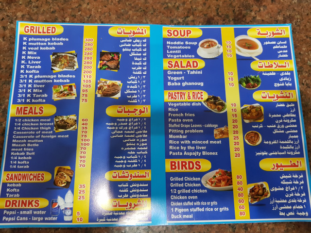 엘 살라모니 메뉴판. (후루가다, Hurghada)