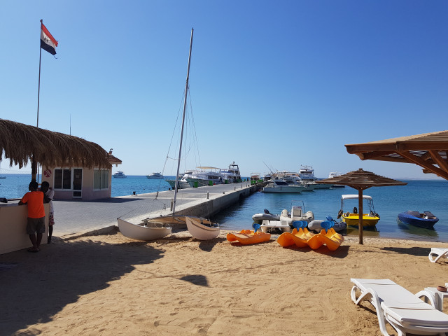다이빙 클럽 앞 부두. 멀리 보이는 배들 중에 하나를 타고 바다로 나간다. (후루가다, Hurghada)