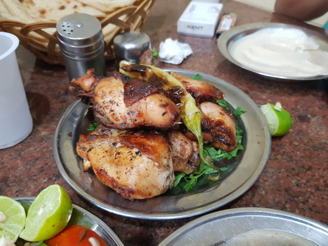 구운 닭고기Grilled Chicken. 원래 비둘기고기를 먹으려고 했으나 재료가 없어서 선택한 메뉴. (후루가다, Hurghada)