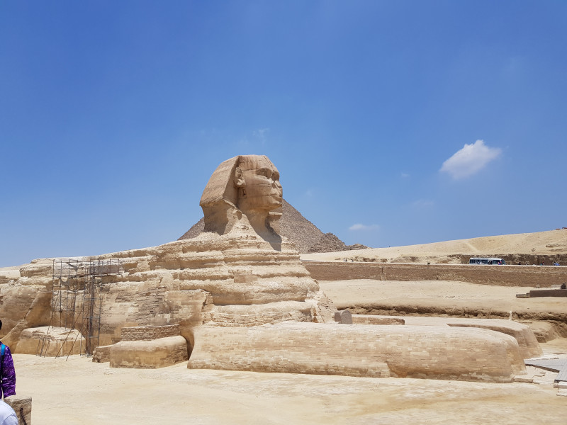 스핑크스. 보수공사 중이다. 스핑크스가 바라보는 방향에 피자헛이 있다. (카이로 기자 피라미드, Cairo Giza Pyramids)