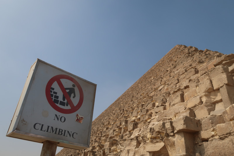 올라가지 말라는 표지판. 근데 올라가는 사람들 많다. (카이로 기자 피라미드, Cairo Giza Pyramids)