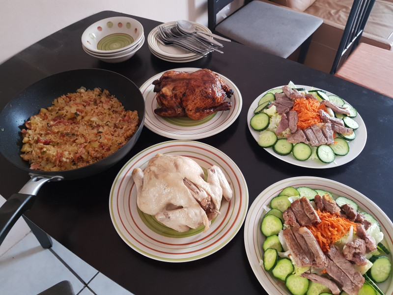 내 걱정은 음식이었다. 총 7명으로 늘어나자 음식이 부족하지 않을지 걱정되었다. 근데 얘네들 의외로 적게 먹었다. 음식 취향이 다를 수 있다는 점을 감안해서 얘네들 좋아하는 고기 위주로 준비했는데도 닭 2마리 중에서 1마리가 남았고, 볶음밥도 꽤 남았다. 이건 소식하는 걸 수 있고, 음식이 입에 안 맞은 거일수도 있다.